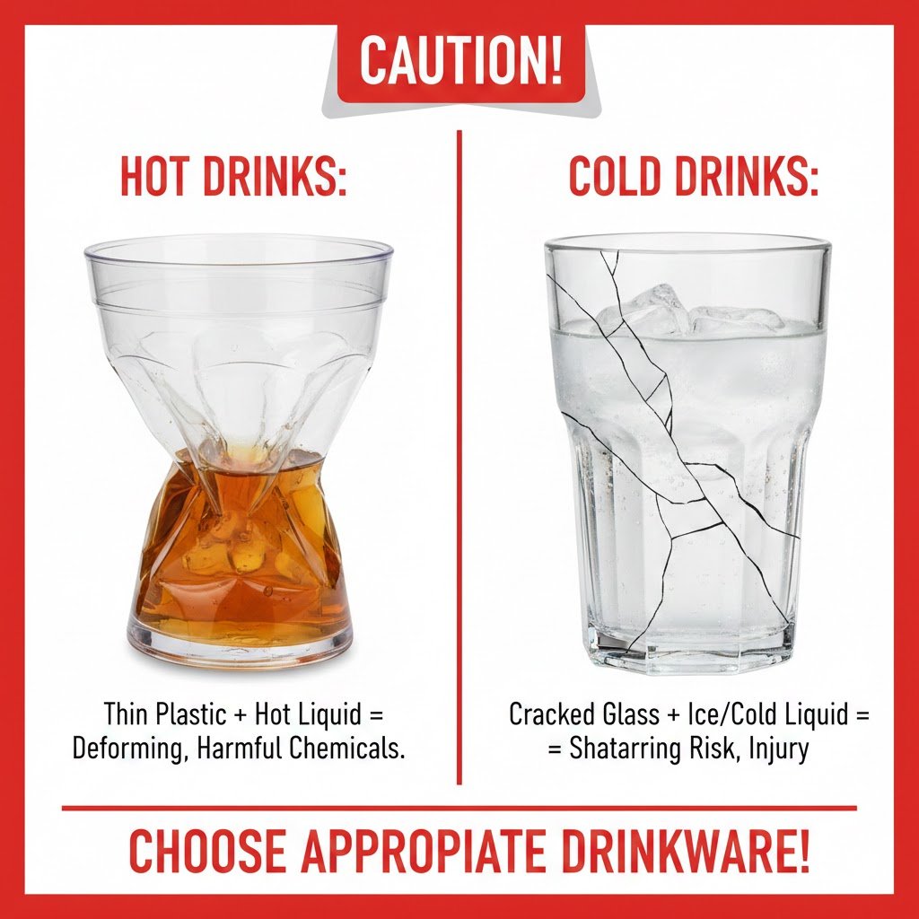 Hot drink glasses are usually thicker. Cold drink glasses are lighter. Proper storage helps both last longer.